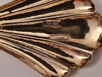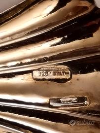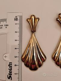 Orecchini argento vintage anni 80 pendenti a forma di ventaglio spesso descritti come "orecchini statement" (orecchini di carattere). Il design presenta pieghe o scanalature che ricordano un ventaglio drappeggiato. Indossati poche volte fanno parte della mia collezione personale. Per igiene ho cambiato le farfalline sul retro le ho acquistate argento 925 non dorate per minimizzare allergia. Anche se sono trascorsi vai anni sono stati ben conservati e comunque di ottima qualità come si può vedere dalle foto perché l'ossidazione non è invadente forse più evidente sul retro. Foto allegate.