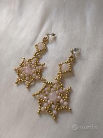 Eleganti Orecchini Artigianali Pendenti con Perline Dorate e Quarzo Rosa Naturale - Perfetti per Ogni Stagione!