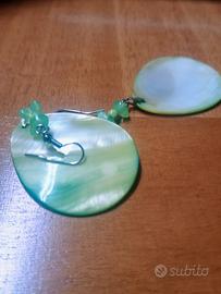 Bellissimi orecchini a goccia realizzati con madreperla. Sono due e presentano sfumature di verde e bianco. Perfetti per aggiungere un tocco di stile al tuo look! - Materiale: madreperla - Colore: verde, bianco - Forma: a goccia.