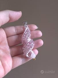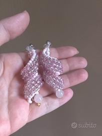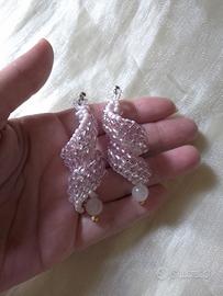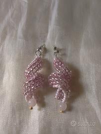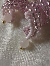 Intessuti a mano con beads di vetro di colore rosa pastello e rosa metallico.