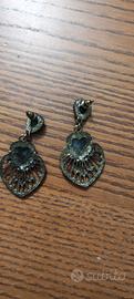 Eleganti orecchini vintage a forma di cuore, con dettagli in color oro e pietre bianche.