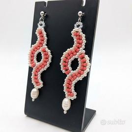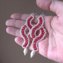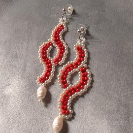 Orecchini Vintage Boho chic Rosso Perle di Fiume