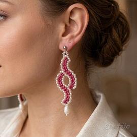 Questi orecchini pendenti a forma di serpente incarnano un raffinato stile boho, interamente tessuti a mano con meticolosa attenzione al dettaglio. Il design è realizzato con beads di vetro color rosso vibrante e perline cerate, impreziosito da eleganti perle di fiume che donano movimento e luce a ogni passo. Frutto di una lavorazione artigianale di alta qualità che richiede cura e tempo, ogni pezzo è privo di colla, nichel o materiali tossici, garantendo un accessorio esclusivo, sicuro e durevole. La chiusura a farfallina assicura una vestibilità comoda, rendendoli un dettaglio di grande classe, versatile per ogni occasione e perfetto per chi cerca un gioiello unico e certificato, simbolo della vera eccellenza Made in Italy.