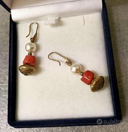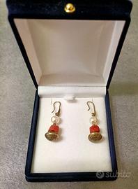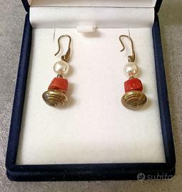 orecchini vintage con pietra corallo naturale