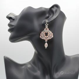 Orecchini Ghirlanda Edoardiana Pezzo Unico Cristalli Maxima Perle Naturali Acciaio Chirurgico