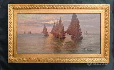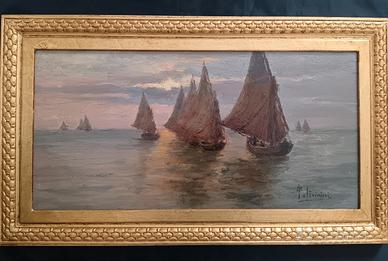 Oreste Paltrinieri (Verona 1863-Viareggio 1966) olio su legno. Ottime condizioni di conservazione. Firmato in basso a destra. Cornice in legno foglia oro nuova. Dimensioni completo di cornice 35 x 60. Dimensioni senza cornice 25 x 50,5.