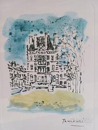 Serie di 4 acqueforti e acquatinte a colori su carta pregiata di Orfeo Tamburi (1910-1994) con vedute di Parigi, firmate a mano a matita dall'artista.