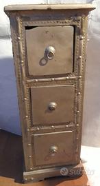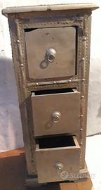 Originale antica Cassettiera '800 a 3 cassetti in legno e decorazione in metallo. L29xp22xh64 Vintage.