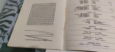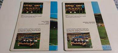 Due quadernini da scuola a quadretti originali degli anni '70, sul mondiale di calcio Messico '70. Tutta la Coppa Rimet partita per partita. Un quaderno ha in copertina Antonello Riva in azione durante Italia - Israele. Tiro di Riva parato dal portiere israeliano. L'altro quaderno ha in copertina la seconda rete tedesca durante Germania Inghilterra. Entrambi i quaderni hanno nella copertina finale la formazione del Brasile, che si è aggiudicata la Coppa Rimet, e la formazione dell'Italia classificatasi al secondo posto. La seconda pagina contiene informazioni sui quarant'anni della Coppa Rimet e sui mondiali 1970. La terza pagina presenta una tabella con orario settimanale delle lezioni. La terzultima pagina contiene lo schema delle tabelline. La penultima pagina contiene i risultati della Coppa Rimet 1970. Soltanto il quaderno con la copertina di Riva ha alcuni tratti di penna sotto le tabelline (vedi foto,). Per il resto ottimissime condizioni generali, qualche inevitabile segno del tempo, tutte le pagine si presentano pulite senza tratti di penna o matita.