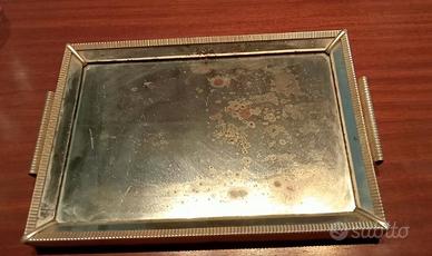 Originale Vassoio in stile Art Déco anni '30 in metallo argentato, piano in vetro a specchio Dimensioni cm 22x31 h 3 cm