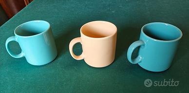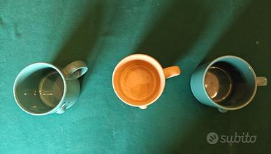 In perfette condizioni, alte circa cm 9, dal diametro di cm 8 e dal peso di g 400, sono utili accessori per la decorazione della casa o come set per colazione e per bevande calde.