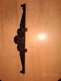 vendo ornamento frontale in metallo (ghisa) antica cassaforte Wertheim & Wiese in Wien, originale. Misure: larghezza cm. 77,5; altezza massima: cm.15 centrale e estremità cm. 5,5. a queste misure vanno sommate cm.1,3 delle 2 sedi di fissaggio