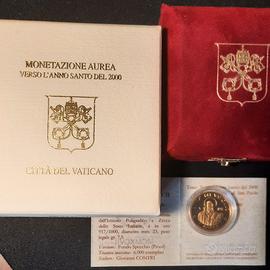 MONETA UFFICIALE DEL VATICANO IN ORO DA LIRE 50.000 EMESSA IL 1997 IN OCCASIONE DELL'ANNO SANTO DEL 2000 CON LA DIZIONE "VERSO L'ANNO SANTO DEL 2000"-COMPLETA DI ASTUCCIO IN RASO ROSSO SCATOLA ESTERNA E CERTIFICATO DI GARANZIA CON I DATI DELLA MONETA-ORO 917/1000 DIAMETRO mm.23 PESO gr.7,5 VERSIONE FONDO SPECCHIO (PROOF)TIRATURA 6000 ESEMPLARI SCULTORE GIOVANNI CONTRI. Spedizione Italia assicurata valore pieno