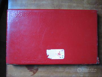 Astuccio originale da orologiaio, anni 60 circa. L’astuccio misura cm 44,50 X 26,50 X 4,50 circa. Come da foto è in pessime condizioni, con i piatti ricoperti, una delle chiusure parzialmente mancante, l’alloggiamento interno per gli orologi rimosso e fori di tarlo. La foderina interna, con la stampa della marca, invece, è perfetta. Ottimo per recupero pezzi a fine restauro.