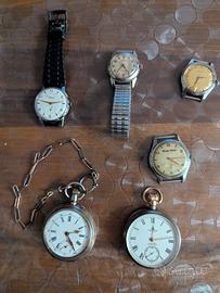 Orologi da polso uomo e da taschino d'epoca anni 50 -60" ancora funzionanti e in ottime condizioni come da foto allegate, vendo in blocco o separatamente a prezzo da definire in trattativa per ogni singolo orologio