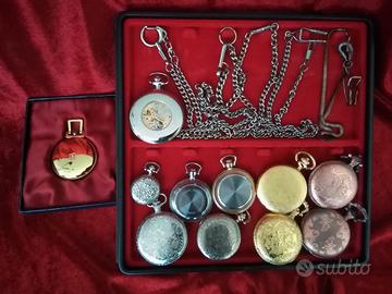 Collezione di 11 Orologi da tasca vintage al quarzo con incisioni e decorazioni, dorati, argentati, ramati,