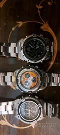 6 crono Swatch acquisto 160€ ognuno di cui 1 alluminio. 3 crono Sector 250€ ognuno 1 Breil crono pelle 300€ 1 Seiko Lassalle crono analogico digitale ultra sottile pelle 350€ 1 Citizen crono digitale 250€ 1 Tiqua crono digitale doppi orari ultra sottile 1 Crono vintage anni 50 corda,pelle 100€ 1 orologio vintage taschino 50€ 1 sub Timex 50 mt. 80€ 1 automatico tipo rolex macchina buona 50€ 3 orologi plastica ottimi+1 copia rolex ( regalati nella vendita) attendo offerta trattabile