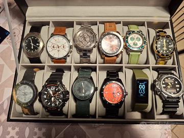 Cofanetto Orologi vari 11 come da foto perfettamente funzionanti in orario.Di cui 1 Breil serie Manta .1 Fossil acciaio ,1 Casio.1 Hip pop mimetico .1 Xiaomi miband 5 e 1 Citizen eco drive seminuovo. Gli altri 5 sono ovviamente copie di poco conto. Vendo in Blocco