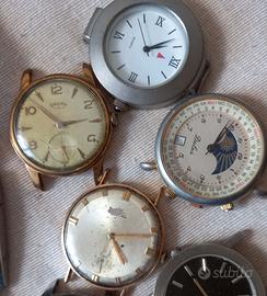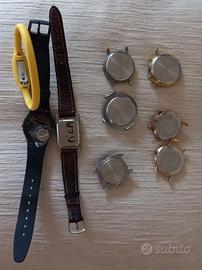 Vecchi orologi in totale nove, vendibili anche in gruppo di tre orologi a scelta per euro venti. Marche: Dacal, Dalas, Enicar, Bivouac e Raketa e Swatch. Ritiro sul posto