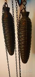 L’orologio è meccanico a carica manuale con pesi originali in ghisa (visibili in foto), catene originali e quadrante con numeri romani.