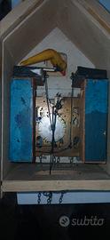 orologio a cucu dell'est molto particolare. è funzionante da regolare l'uscita dell'uccellino perchè lo sportellino non si chiude bene. completo di pesi originali e pendolino.