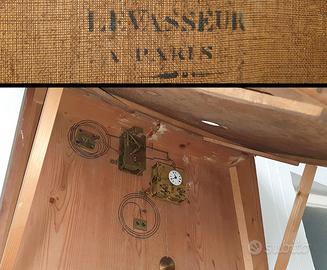 L’orologio si presenta con il quadrante smaltato bianco di diametro cm. 4,7, con numeri romani neri e lancette delle ore e dei minuti. L’estrema punta della lancetta dei minuti è recisa. Il movimento meccanico è in ottime condizioni, funzionante con precisione, caricabile a molla, batte le ore e le mezze, revisionato molti anni fa, è fermo da qualche anno per questo si consiglia una nuova revisione per una migliore conservazione del movimento.