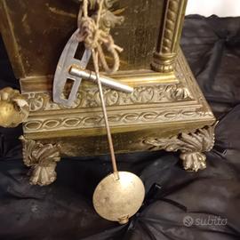 bellissimo e di grande qualità, trittico in bronzo composto da due candelieri e orologio a pendolo,carica 8 giorni,in perfette condizioni,1880, grandi dimensioni, vendita a prezzo ridicolo.... spedizione da quantificare e senza responsabilità per rotture, imballo comunque accurato