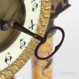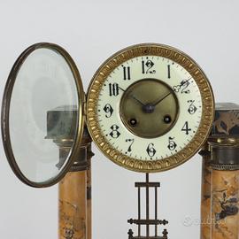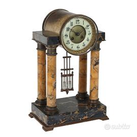 Orologio a tempietto in marmo e bronzo dorato. Mostra con ore a numeri arabi