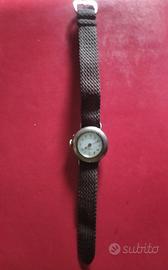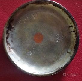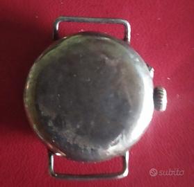 Orologio da polso da donna, ricavato da una monachina, non funzionante; è possibile regolare l' ora ma non funziona il meccanismo di carica; la cassa e parte del quadrante sono in argento 800 (vedi foto del punzone) è stato fatto anche il test con pietra di paragone che ha dato esito positivo. Il centurino è in canapa