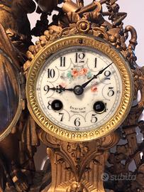 Orologio antico figura femminile, decorazioni a colori sul basamento. quadrante smaltato decorato. scrittura Anaclet Angoureme. largh. 42cm x prof 14cm x 51,5 cm h. no spedizione orologio anche per scatti fotografici. Shooting