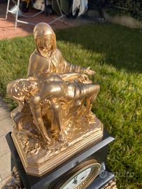 Vendo orologio antico da tavolo con elegante scultura dorata raffigurante La Pietà.