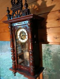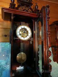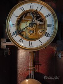 Orologio pendolo da muro antico , primi Novecento , revisionato, funzionante, in legno non tarlato, suona gong All'Ora e mezz'ora. Misure H 83x30x20 Ritiro in zona ( Oriolo romano VT)