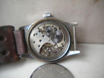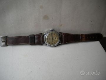 Orologio Ateria tipo militare da collezione vintage cassa cromata mm.32 fondello acciaio a vite quadrante originale vintage movimento meccanico carica manuale funzionante cinturino in cuoio