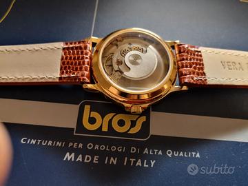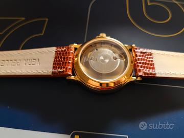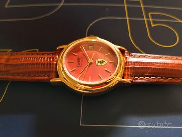Particolare orologio Ferrari , automatico , in ottime condizioni , cassa placata oro con diametro 34 mm esclusa la corona di carica , fondello a vista , cinturino in pelle nuovo.