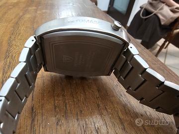 orologio da polso acciaio braccialato acciaio. DeTomaso, marchio della nota fabbrica di automobili a Modena unico nel suo genere con scatola dell'epoca e libretto di istruzioni completo di maglie per l'allungamento del bracciale .Anno 1972.
