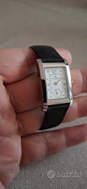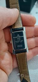 Baume & Mercier Hampton, un modello iconico caratterizzato dalla cassa rettangolare ispirata al design Art Déco degli anni '30 modello MV045139 Movimento:Quarzo svizzero. Cassa:Acciaio inossidabile con vetro zaffiro leggermente bombato. Quadrante:Bianco con numeri arabi 12, 3 e 9 e indici a punta di freccia o borchie. Dimensioni:Questo specifico modello da donna ha solitamente una larghezza della cassa di circa20 mm. La linea Hampton è stata lanciata originariamente nel1994ed è diventata uno dei pilastri della produzione Baume & Mercier per il suo equilibrio tra eleganza classica e modernità.