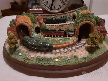 Orologio Brandford Exchange realizzato da un raffinato stampo artistico con locomotiva delle Ferrovie in movimento, Dipinto a mano. meccanismo al quarzo.
