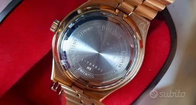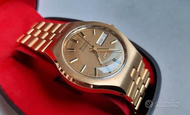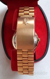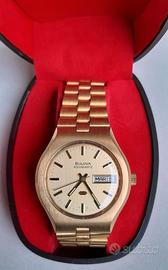 da collezione privata raro orologio Bulova, movimento accutron perfezionato, anni 70, laminato oro, condizioni pari al nuovo, completo di scatola e controscatola, cassa mm 38 esclusa corona di carica, made in U.S.A.