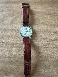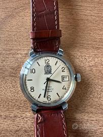 orologio Buran KGB prodotto in edizione limitata all'inizio degli anni '90 dalla Royal Trade Import GMBH. KGB President. Movimento: Automatico calibro 2416B, solitamente con 17 rubini. Cassa in ottone cromato con fondello a vite, quadrante crema con indici arabi e lo stemma del KGB. : Prodotto in URSS. Non spedisco.