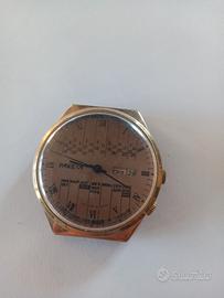 Origine: Al centro del quadrante, in basso, è presente la scritta "СДЕЛАНО В СССР" (SDELANO V SSSR), che significa "Fatto in URSS", indicando la sua origine sovietica.Nella parte inferiore del quadrante, sono elencati i mesi dell'anno in russo, disposti in colonne, come "ЯНВ" (GEN), "МАЙ" (MAG), "АВГ" (AGO), "ФЕВ" (FEB), "ИЮНЬ" (GIU), "СЕН" (SET), "ОКТ" (OTT), "ДЕВ" (DIC), "МАР" (MAR), "НОЯБ" (NOV), "ДЕК" (DIC), "ИЮЛЬ" (LUG), "ЯНВ" (GEN).