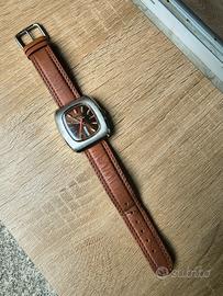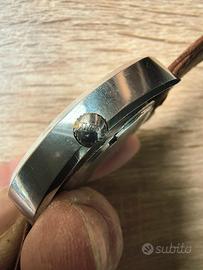 Vendo orologio Camy anni 70, modello Geneva Time Square, dotato di movimento ETA 2788. Cassa e fondello spazzolati e lucidati, con bella alternanza tra lo spazzolato della parte anteriore della cassa e i fianchi che si presentano lucidi.