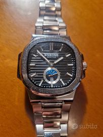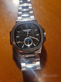 orologio in acciaio completo di datario e fasi luna movimento al quarzo. stile modello di pregio. l orologio e nuovo mai usato