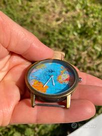 Funzionante con cinturino da cambiare. Molto particolare con motivo a mappamondo. Lancetta dei secondi con aereo che gira. Ottimo per un viaggio e leggerissimo. Unisex. #orologio #orologiodapolso #viaggio #viaggi #mondo #world #monde #celeste #mappamondo #cartinageografica #geo #geografia #collezionismo #orologiodacollezione
