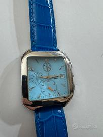 Elegante orologio cronograto LMImpero con cinturino in pelle blu e cassa in accialo. - Quadrante azzurro. - Dettagli argentati. - Cinturino in pelle blu con texture. - Funzione cronografo.