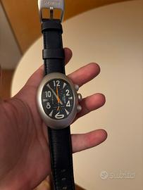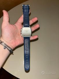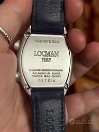 Orologio CRONOGRAFO IN OTTIME CONDIZIONI PRATICAMENTE È COME NUOVO:SOLO MESSO MASSIMO 2/3 VOLTE DAL MIO COMPAGNO,Orologio con funzioni CRONOGRAFO AL QUARZO COME SI VEDE DAI PRIMI PRIANI AL QUADRANTE,FIRMATO ORIGINALE:”LOCMAN ITALY”,Modello:”NUOVO”Ref.:014,Cassa in alluminio (come scritto sul retro della cassa),WATER RESISTANT,interno cassa blu scuro e ora 1,5,7,9,11 CON TRIANGOLI IN COLOR ARGENTO LUCIDO E CON DATARIO ALLE ORE 3,con cinturino originale colore blu NON SO SE SIA VERA PELLE O ECO PELLE MA È MORBIDO E IN PERFETTE CONDIZIONI SIA IL CINTURINO CHE LA CASSA DELL’OROLOGIO CHE LA CUSTODIA NERA E TUTTO ORIGINALE E PERFETTO E FUNZIONANTE,SOLO LA PILA/BATTERIA SI È SCARICA ED È DA CAMBIARE PER IL RESTO È IN OTTIME CONDIZIONI PRATICAMENTE COME NUOVO COME MOSTRANO LE MIE 6 foto,VETRO INTEGRO E IN PERFETTE CONDIZIONI:COME NUOVO,CINTURINO INTEGRO E SENZA ROTTURE NE DIFETTI.