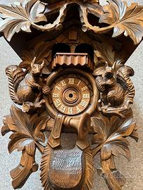Grande casetta in massello per orologio a cucù per carillon e ballerini, completo di soffietti, gong e pendolo.