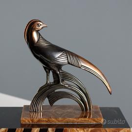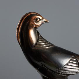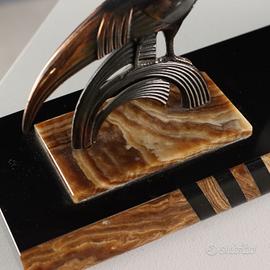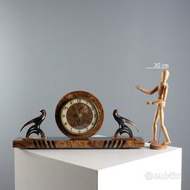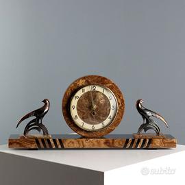 appoggia al centro l'orologio affiancato da due uccelli stilizzati in metallo.