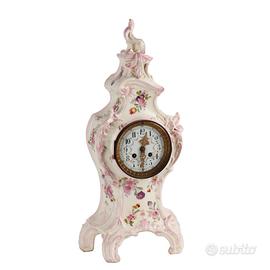 Orologio da appoggio in stile barocchetto in porcellana con decori policromi a