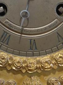 orologio da camino francese bronzo e oro attualmente non funzionante completo in ogni parte con chiave. misure l 34 h 47 p12 visibile in Ferrara eventuale spedizione possibile da concordare con il venditore