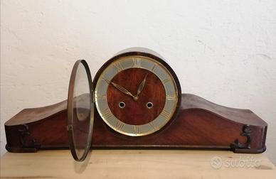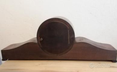 Orologio in legno da camino prima metà del 900, cm. 60x25x15. Orologio funzionante, molla suoneria bloccata. prezzo non trattabile. L'acquirente si assume la responsabilità se dovesse arrivare danneggiato dalla spedizione.